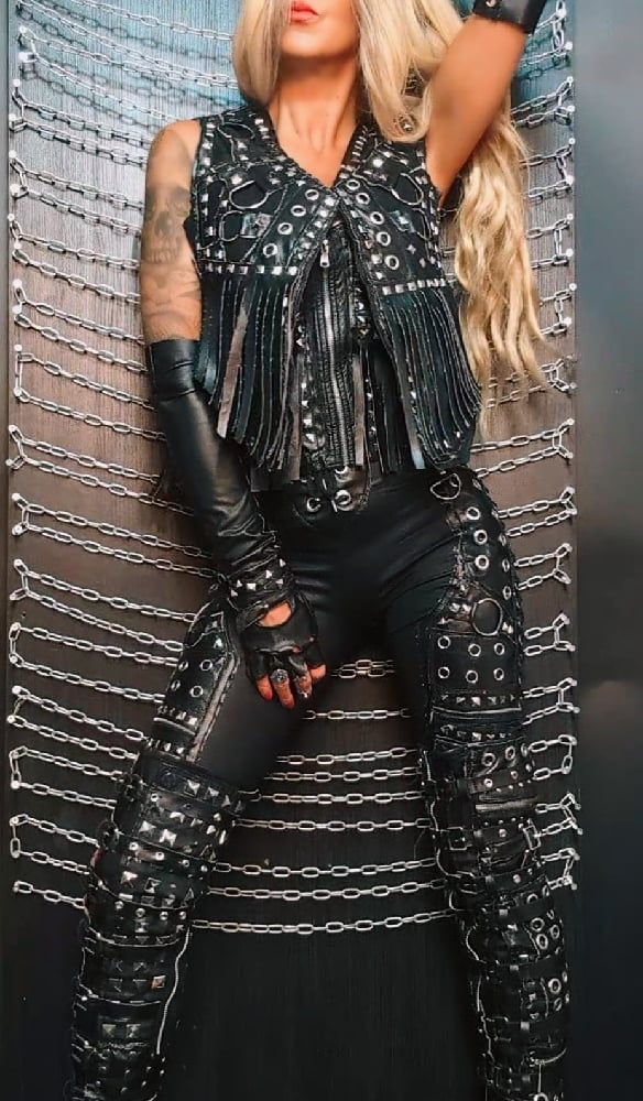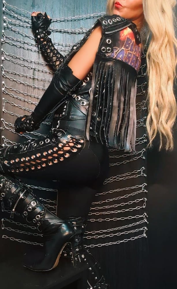 Judas Christ, one of a kind Black Sabbath Top. Fringed front and back, heavily detailed with official merch, rivets, o rings, studs all over.