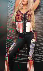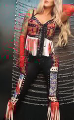 Judas Christ one of a kind kiss love it loud wet look faux leather leggings / pants. High waisted, lace up sides, stretchy, heavily detailed covered in studs and rivets with v back panel.
